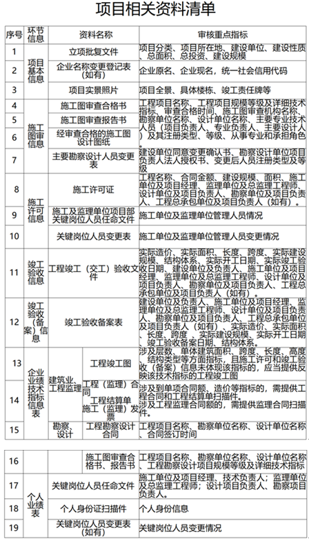 3.房建市政类工程项目应当结合该项目在监管过程中产生的工程档案信息,如项目立项、招投标、施工图审查、施工许可、竣工验收备案等信息,以及工程项目共享信息进行审核确认。