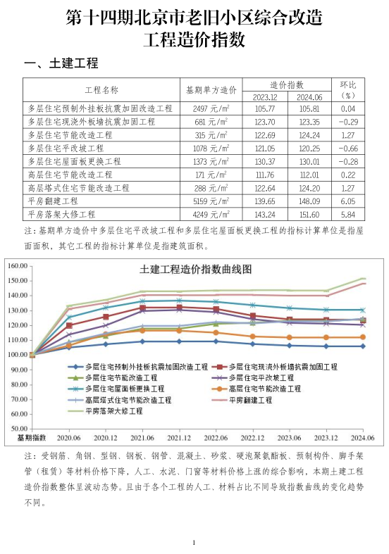 北京市住房和城乡建设委员会发布《第十四期北京市老旧小区综合改造工程造价指数》
