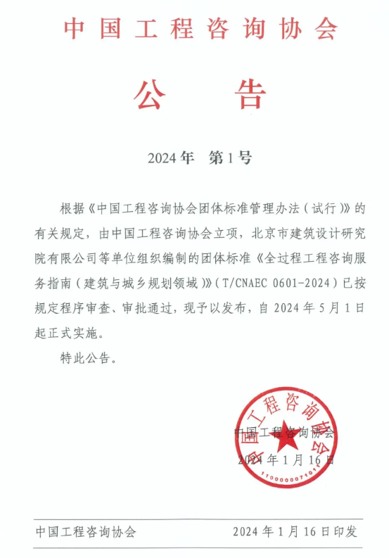 中国工程咨询协会发布《全过程工程咨询服务指南(建筑与城乡规划领域)》T/CNAEC0601-2024