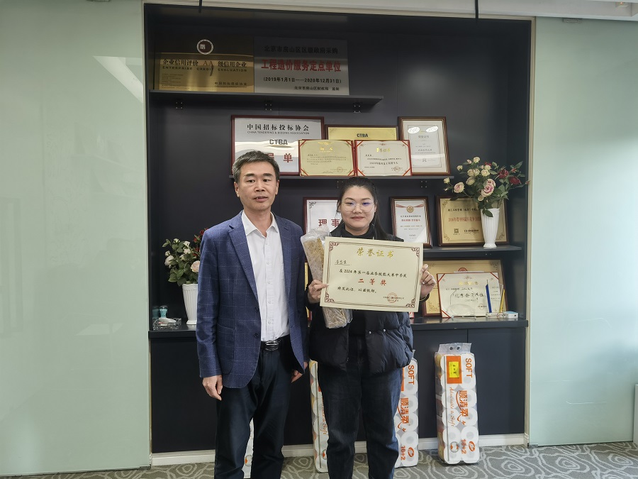 赛后,公司总工程师段少佐为获胜选手颁奖,审计中心伊娜代表获奖选手进行了发言。